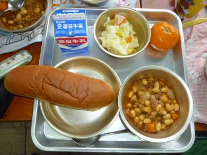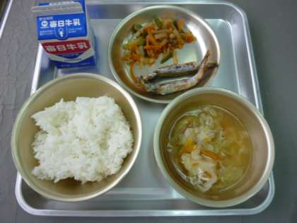6月3日は、黒糖コッペパン・冷凍ミカン・牛乳・野菜のホットマリネ・チリコンカーンでした。チリコンカーンは、大豆、牛ひき肉、たまねぎ、にんじんをトマト味のスープで煮込んだ料理です。おいしかったです。5日は、ご飯・牛乳・キャベツのすまし汁・ししゃものからあげ・野菜のきんぴらでした。シシャモは、一人2匹です。骨も全部食べられます。よくかんで食べました。おうちでもシシャモを食べているでしょうか?ごちそうさまでした。1年生の給食試食会は、6月19日です。ご予定ください。
