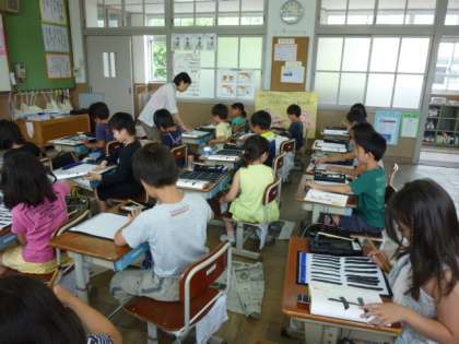 3年生の教室から墨のいいにおいがしてきました。「土」という字を静かに書いていました。心が落ち着きます。
