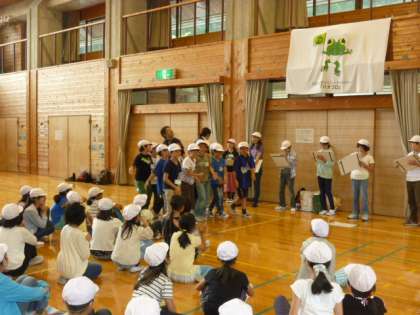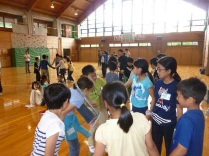 昨晩はパソコンの調子が悪くてホームページをアップすることができませんでした。申し訳ありませんでした。昨日は少し雨が降りましたが、おべんとうを部屋で食べた以外はすべて予定通りできました。みんな元気です。ゲームを通して元町との仲がぐっと近くなり、友達の輪が広がってきました。夜も楽しく寝ました?