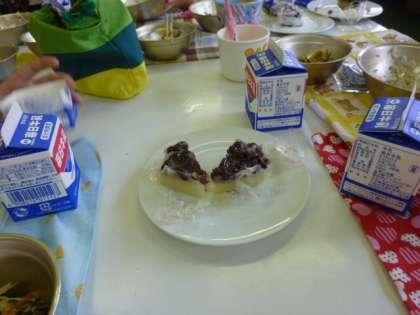 完成しました。いかがでしょうか?ちょうど、すこやか学級で地域の方々が来られていたので「3年生が作った水無月です。」とおすそ分けに行きました。「家でも作りたい!作り隊!」と話していました。ただ、食べるだけでなく、その意味や人々の込められた願いなどを考えることが食育学習ではとても大切なことだと考えています。子ども達に尋ねてみてください。