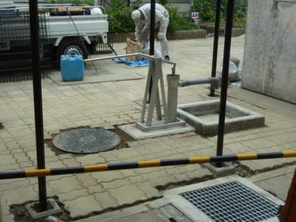 土曜日もトイレの工事がありました。先日も雨の中でも作業が、続けられました。新しくポンプも出来上がりました。もうすぐ完成です。