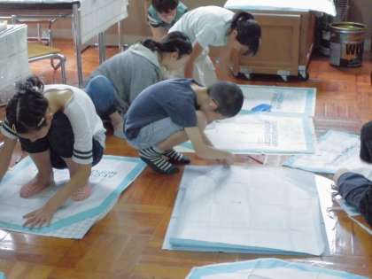 家庭科の学習でエプロンを作っています。子どもたちは,教え合いながら作っています。完成が楽しみです。