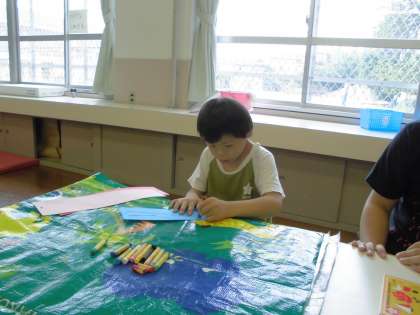 7月7日(火)に七夕かざりをつくりました。星にねがいをこめて,3つの短冊に願いをこめてかきました。