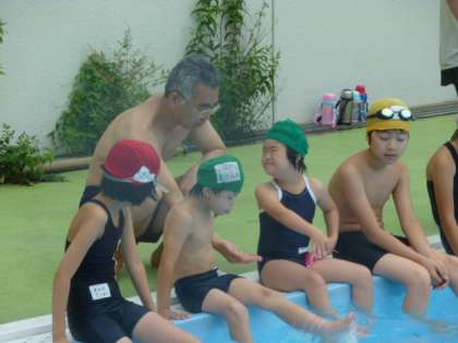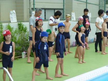 いよいよプールに入りました。たくさんの人数だったのでちょっとびっくりしたところもありました。広いプールのプールサイドにビニールプールも用意されていました。そこもお気に入りの様子でした。楽しく参加してきました。