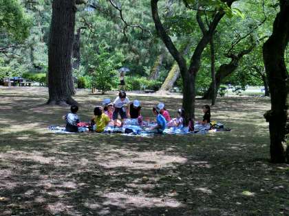 久しぶりの厳しい日差しの日でしたが,大きな木がたくさん枝を広げている木陰では,気持ちのよい風も感じられ,とても居心地良く時間を過ごせました。