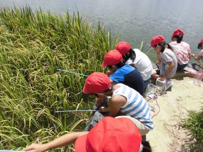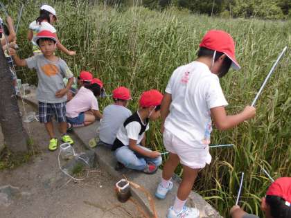 今日は,みんなが楽しみにしていたザリガニ釣りです。