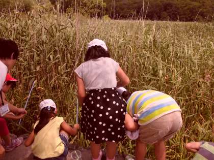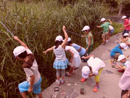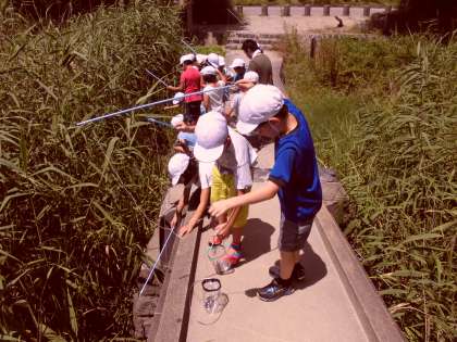 夢中になって,ザリガニを釣っている子どもたちは,とてもかわいらしかったです。