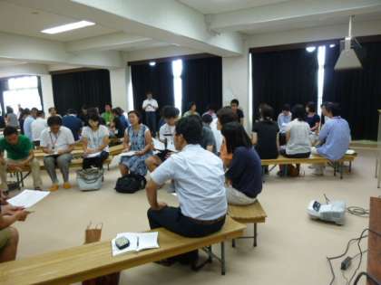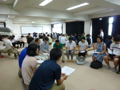 今日、8月19日に加茂川中学校で、中学校ブロックの教職員が集まり合同の研修会を行いました。元町・紫竹・上賀茂・紫明の4つの小学校の子どもたちが加茂川中学校に通います。みんなで集まり「道徳教育」について講演を聞いたり、グループで話し合ったりしました。小学校と中学校の連携はとても大切です。