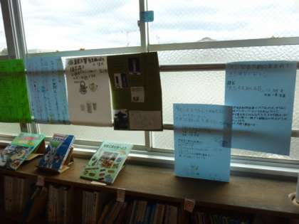 図書委員会が「こんな本読んだらどうですか?」とポスターで知らせています図書委員の一人一人の顔を思い浮かべています。どんどん読んでいるかな。楽しみにしています。