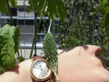 学校では、春にまいたツルレイシが実となりました。「こんな実になった」ということを早くみんなと観察したいです。