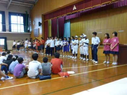 加茂川中学校では、6年生が少し緊張気味?でした。部活動の紹介やゲームが体育館でありました。アイドル「かもくん」が登場。来年度から制服が新しくなるようです。