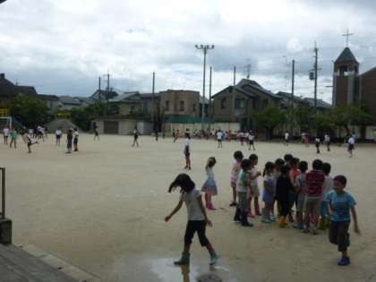 今日は水曜日!子どもたちは、すいすいあそびを楽しみにしています。いつもより長く遊べるので、運動場がにぎやかになります。