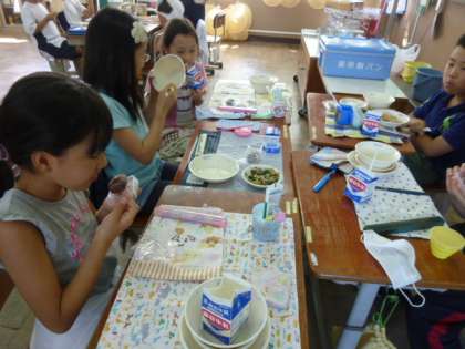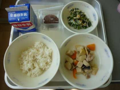 初めておはぎが給食に登場しました。「家でよく食べるよ。」「一回も食べたことない!」など子どもたちの反応は様々でした。どのクラスも大変にぎやかでした。