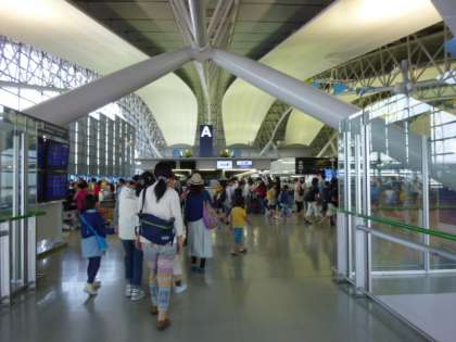 運動会の翌日、紫明少年補導委員会の主催による恒例の秋のリクレーションが行われました。学校からは、41人の子どもたちが、保護者や地域の方々と一緒に参加しました。大型観光バス2台です。関西国際空港へ行きました。国際線の出発カウンター、スカイミュージアム、展望デッキなどを見学をしました。最後には、バスに乗ったまま「関空裏側探検」として特別エリアを見学することができました。世界の飛行機がすぐ上に飛んでいく様子を見て「うわー!」と歓声が上がりました。飛行機に乗って出かけたくなりました。運動会の疲れも見せず、みんな目を輝かせて見ていました。お世話をしていただきました、紫明少年補導のみなさまありがとうございました。