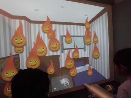 真っ暗な中明かりを頼りに避難したり、まるで家のような部屋で震度1〜7を体験したりしました。