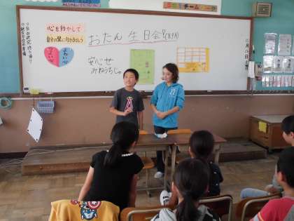 久しぶりのお誕生日会をしました。みんながうれしくて,ウキウキワクワクしていました。歌は「ハッピーバースデイ」と「夏色」。遊びは,ドッジボールと王様ドッジボールです。恒例のお笑いも,大盛り上がり!前期最後の日に,みんなニコニコ,素敵な会ができました。