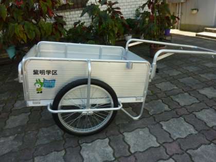 エコにやさしい紫明ということでリヤカーをいただきました。さっそく、使っています。紫明の字がかわいく書かれています。ありがとうございました。