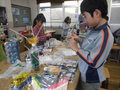 透明な材料を使って,工作をしました。