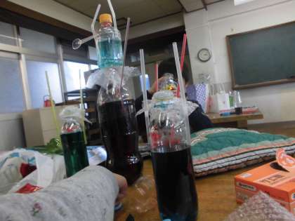 また,食紅で作った色水も使いました。(水漏れのハプニングも……)