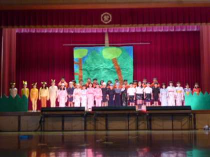 学芸会の練習です。2年生は、「おばけじぞう」です。がんばっていました。午後の部は、1時30分から始まります。午後の最初は、育友会の方々によるコーラスです。すでにお渡ししているプログラムを見ていただきますようにお願いします。応援よろしくお願いします。