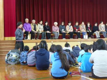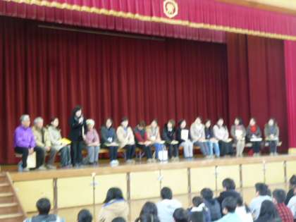 今年もお礼の会を行いました。登校を見守ってくださる「セーフガード」のみなさん、読み聞かせボランティアさん、部活動などの教育ボランティアさん、放課後まなび教室の方々など今年は、39人の方々にお世話になりました。ありがとうの気持ちを込めて「お礼の会」を行いました。おひとりずつお話を聞かせていただきました。いつもありがとうございます。