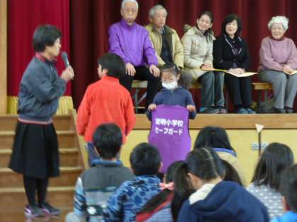 育友会から、セーフガードさんへの夏用ユニフォームを新調していただきました。代表の1年生が、セーフガードさんにお渡ししました。ありがとうございます。