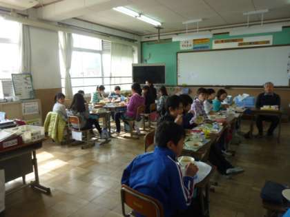 今年初めて、お礼の会の後で「ありがとう給食」を実施しました。お礼の会を4時間目にしてそのあと、ボランティアさんに全部の教室に入っていただき子ども達と一緒に給食を食べていただきました。「ありがとう給食」です。16人の方々が参加していただきました。当日は、雛祭り献立でした。ちらし寿司・平天の煮つけ・キャベツの吉野汁・三色ゼリーでした。初めての試みでしたが、「おいしかった。」「楽しかった。」「嬉しかった。」と話していただきました。お忙しい中たくさん参加していただきましてありがとうございました。次年度もよろしくお願いします。