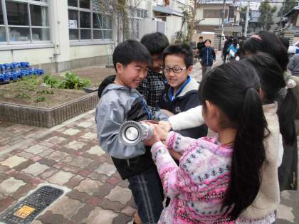 紫明消防分団の方にお越しいただき,京都市の消防団についてのお話を聞いたり,学校にある倉庫の中を見せていただいたりしました。