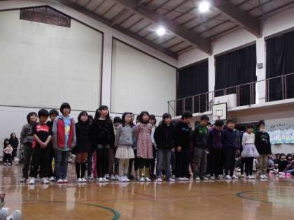 全校が集まった体育館に4年生の歌声が響きます。