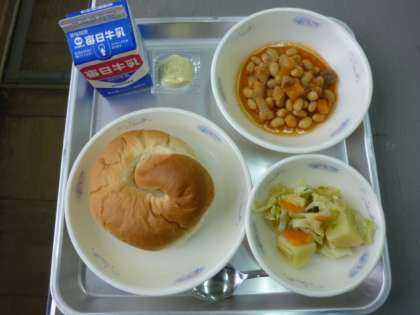 3月2日の給食は、バターうずまきパン・型チーズ・牛乳・ポークビーンズ・野菜のホットマリネでした。給食カレンダーには、キャベツのクイズが出ていました。キャベツは1年中食べられますが、春にとれるものは、特にやわらかいようです。