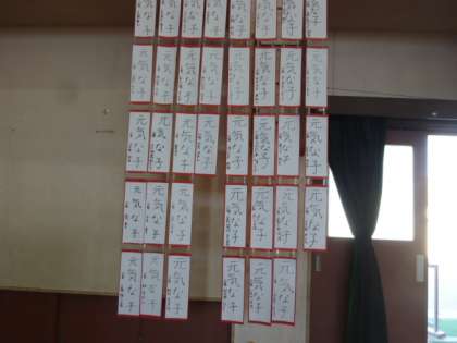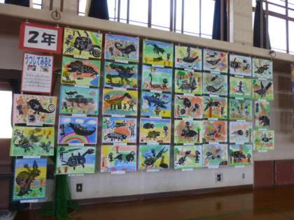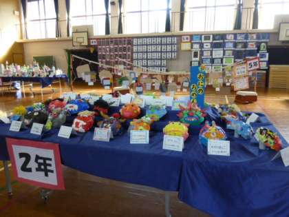 2年生のコーナーです。かわいいお面が並んでいました。いろんな鬼がありました。楽しい鬼がいっぱいで仲良くなりたいです?