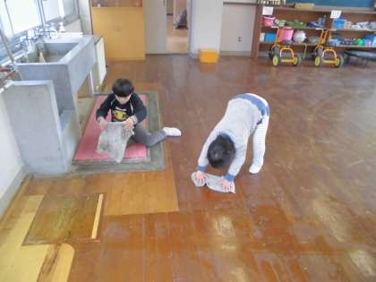 いつも使っている,大切な部屋。プレイルームの大掃除をしました。二人ともがんばりました。