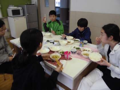 今日の給食に桜餅が出ました。桜の葉で巻いてあり,みんなでおいしくいただきました。