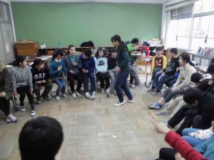 最後の外国語活動の授業では,アリ先生と一緒にフルーツバスケットをしました。英語での表現の仕方を考えて,楽しく活動することができました。