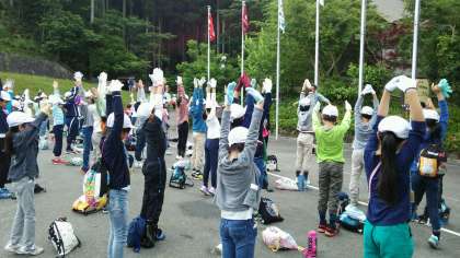 準備体操をして,いよいよ山に出発です。