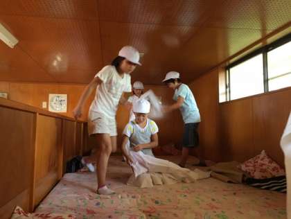明るいうちに寝具の用意です。