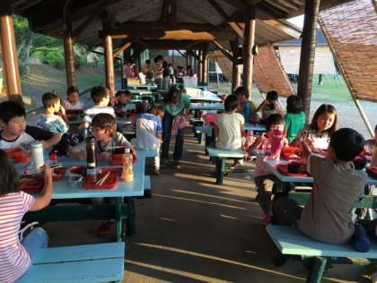 今日はあずまやで、夕食をいただきました。