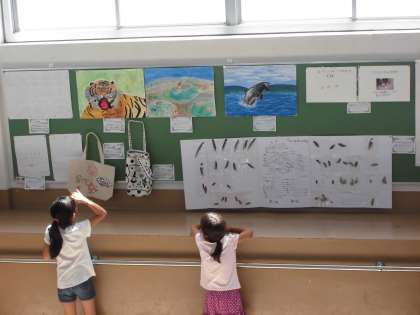 夏の自由課題の作品を教室の前に展示してからというもの,子どもたちは友だちの作品に興味津々。他の学年の作品も見に行きました。「あ!○○さんはこんなのをしたんだね。」「歴史を調べている人がいるよ。僕も歴史が好きだからこんなのもいいな。」「来年はこんなのもやってみたいなあ。」など,嬉しそうに眺めたり,次の自由課題について考え始めている子もいました。来年はどんなことに興味をもっているのでしょうか。今から楽しみです。