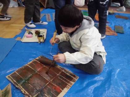 13日(火)に合同作品作りで,紫野小学校へ行ってきました。