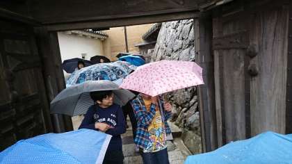 あいにくの雨ですが、姫路城を見ると、「きれい❗」「真っ白や❗」、「大きいなぁ。歴史を感じる。」と言っていました。