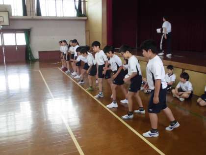 最後の測定は,「20mシャトルラン」です。20m間隔の線の間を,ランニングスピードの電子音に合わせて何度も折り返し走ります。初めは,意気揚々と走っていたのですが,段々と息が上がってきていました。でも,何とか電子音についていこうと,粘り強く走っていました。往復回数が増えるごとに,応援の声も大きくなり,励まし合って頑張っていました。声援を力に変えて,記録を一段と伸ばせたようです。計測だけでなく,そんな姿が見られて嬉しい時間になりました。
