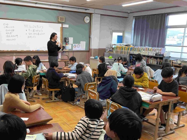 今日は大学の先生にきていただき、「防災リュック」を考える学習をしました。