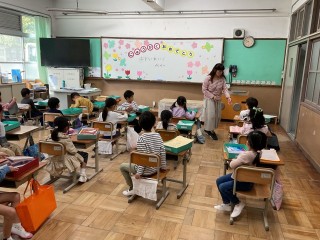 4月13日(月)1年生は登校してからすることを確認したり、保健の先生からトイレの使い方の話を聞いたりしました。