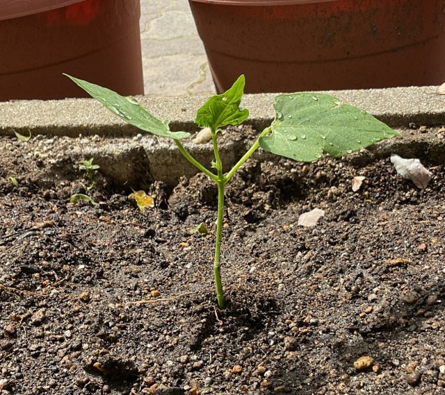 ひまわり学級では、今年はいんげん豆を植えました。前年度に植えたじゃがいもも、引き続き育てています。