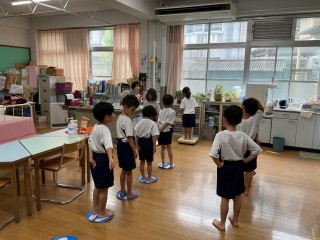 1年生が身体測定を行いました。目印にきれいに並んで、静かに順番を待つことができていました。