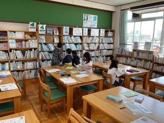 学校図書館の使い方を確認した後、自分が好きな本を読んだり、借りたい本を見つけたりしています。