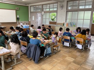 今日は2年生はグループで給食をいただきました。2年生になって配膳もさらに早くできるようになっています。