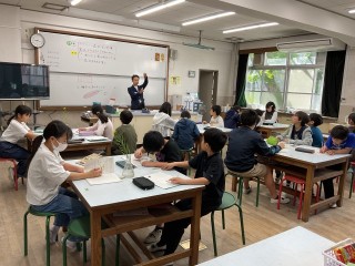アブラナの花が咲いた後、実がどのようにできるのかについて学習しています。