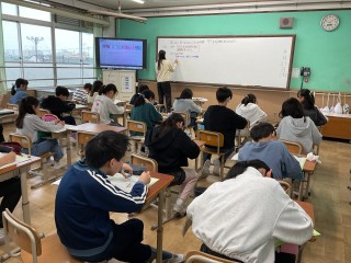 外国語では、Dの発音を聞き取る学習をしています。家庭科では、一日の生活時間を調べ、課題を見つける学習をしています。
