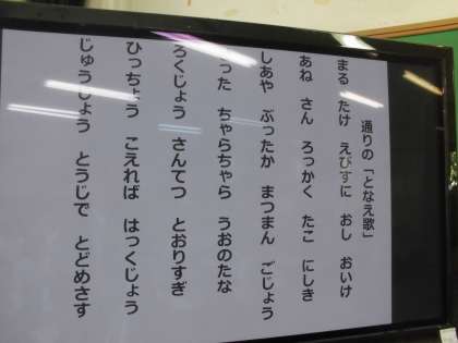 4年生は「丸(まる) 竹(たけ) 夷(えびす)に 押(おし) 御池(おいけ) ♪ ♫ 」とリズムに合わせて,通りの唱え歌を歌っています。